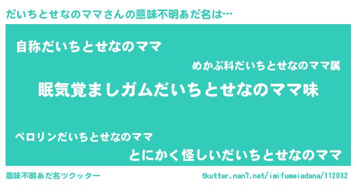 | 欧米人風あだ名 | 『ダニエルだいちとせなのママ』 |