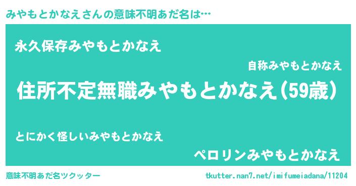 | 伝説のあだ名 | 『古文書に記された暗殺者みやもとかなえ』 |