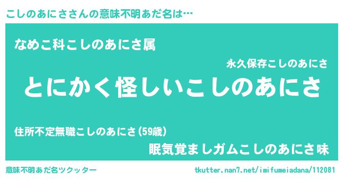 | 女子向けラノベタイトル風あだ名 | 『こしのあにさの卵を拾いまして』 |