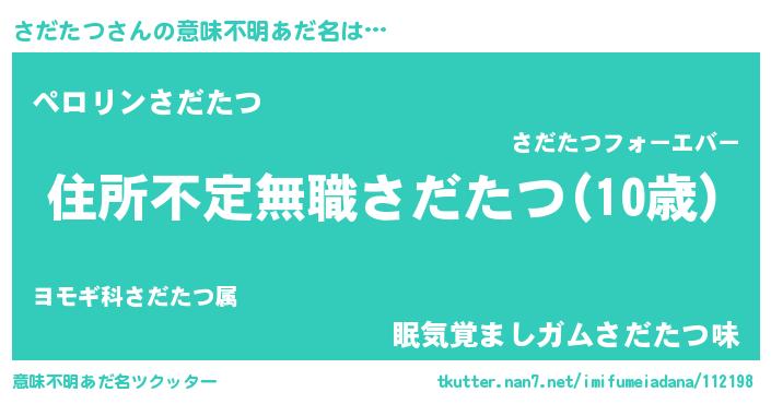 | ヒーロー風カッコイイあだ名 | 『仮面サダダー』『スーパーサダタツ』 |