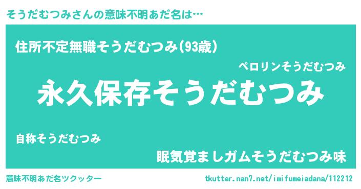 ヘコむあだ名 | 『そうだむつみ(小並感)』『そうもー』 |
