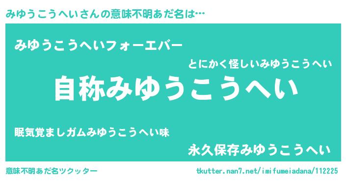 | 男性向けラノベタイトル風あだ名 | 『緋弾のミユウコウヘイ』 |