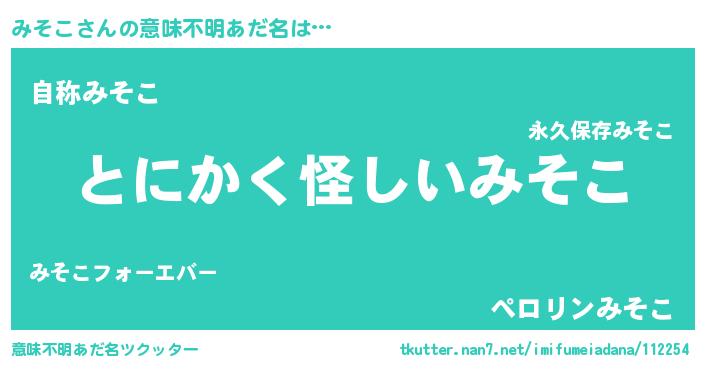 | ヒーロー風カッコイイあだ名 | 『銀牙騎士ミソ』『最強戦士ミソコ』 |