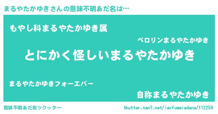 | 胡散臭い通販商品みたいなあだ名 | 『伝統あるサプリメント…その名も「まるやたかゆき」』 |