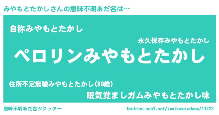 | 男性向けラノベタイトル風あだ名 | 『みやもとたかしの憂鬱』 |