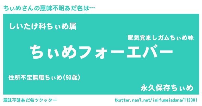 | 胡散臭い通販商品みたいなあだ名 | 『世界が平和になる高級そうな壺…その名も「ちぃめ」』 |