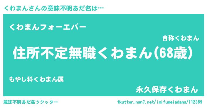 | 男性向けラノベタイトル風あだ名 | 『この素晴らしい世界にくわまんを!』 |