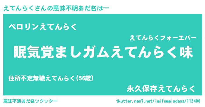 | 男性向けラノベタイトル風あだ名 | 『えてんらくに滅ぼされるだけの簡単なお仕事です』 |