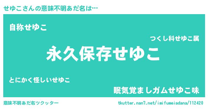 | 男性向けラノベタイトル風あだ名 | 『せゆこという概念が存在しない退屈な世界 』 |