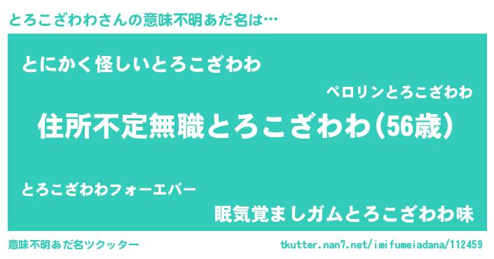 | 男性向けラノベタイトル風あだ名 | 『この素晴らしい世界にとろこざわわを!』 |