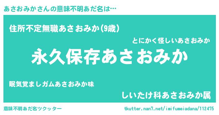| ヘコむあだ名 | 『あさおみか(笑)』『あさを』 |