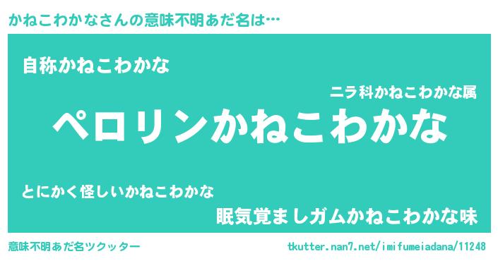 | 胡散臭い通販商品みたいなあだ名 | 『モテモテ間違いなしブレスレット…その名も「かねこわかな」』 |