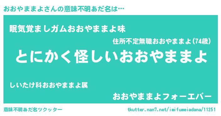 | 女子向けラノベタイトル風あだ名 | 『おおやままよは平凡を望む』 |