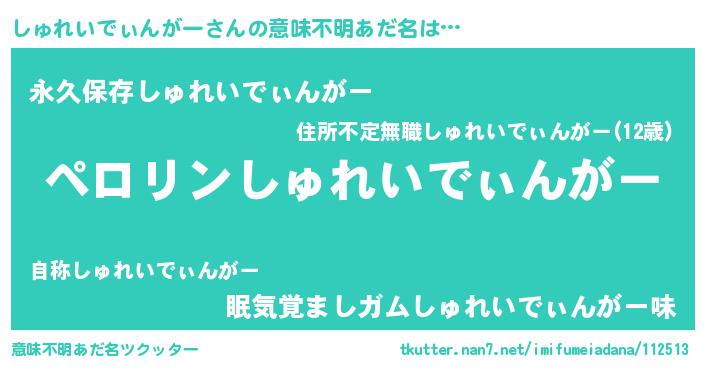 | 男性向けラノベタイトル風あだ名 | 『しゅれいでぃんがーの憂鬱』 |
