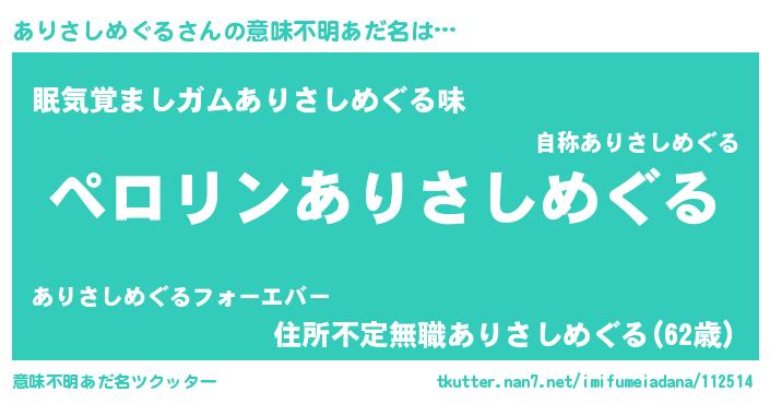 | 胡散臭い通販商品みたいなあだ名 | 『必ず成功する霊験あらたかなお札…その名も「ありさしめぐる」』 |