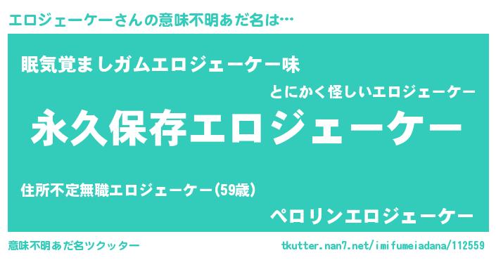 | 男性向けラノベタイトル風あだ名 | 『エロジェーケーという概念が存在しない退屈な世界 』 |