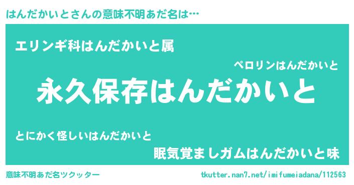 | ヘコむあだ名 | 『はんだかいと(爆)』『はんにゅー』 |