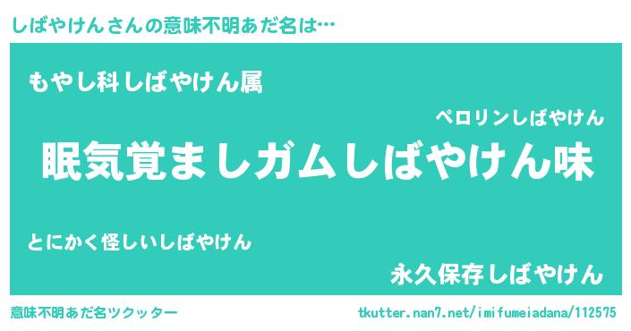 | 男性向けラノベタイトル風あだ名 | 『ノーゲーム・ノーシバヤケン』 |