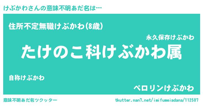| 男性向けラノベタイトル風あだ名 | 『転生したらけぶかわだった件』 |