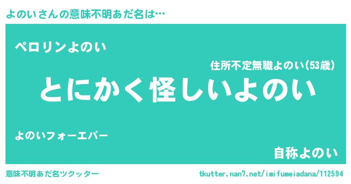 | 欧米人風あだ名 | 『ウサインよのい』『マイケルよのい』 |