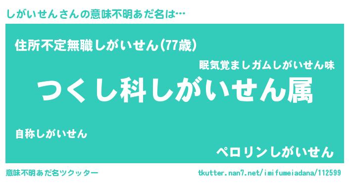 | 胡散臭い通販商品みたいなあだ名 | 『あなたにだけ特別に提供する世界で10本だけ現存している希少なブランデー…その名も「しがいせん」』 |