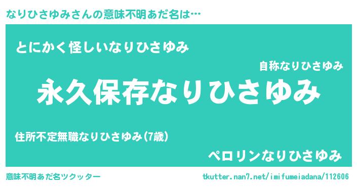 | 男性向けラノベタイトル風あだ名 | 『なりひさゆみという概念が存在しない退屈な世界 』 |