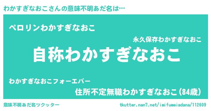 | 胡散臭い通販商品みたいなあだ名 | 『ガンによく効く高麗人参…その名も「わかすぎなおこ」』 |