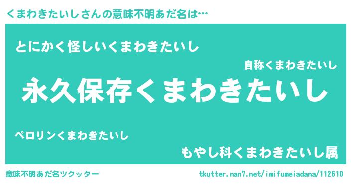 | 胡散臭い通販商品みたいなあだ名 | 『絶対に幸福をもたらす健康食品…その名も「くまわきたいし」』 |
