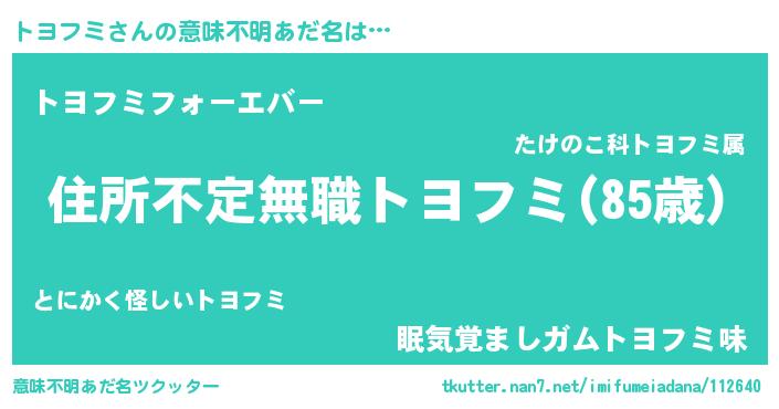 | 男性向けラノベタイトル風あだ名 | 『この素晴らしい世界にトヨフミを!』 |