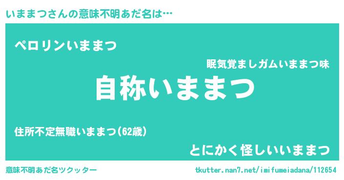 | 男性向けラノベタイトル風あだ名 | 『Re:いままつから始める異世界生活』 |