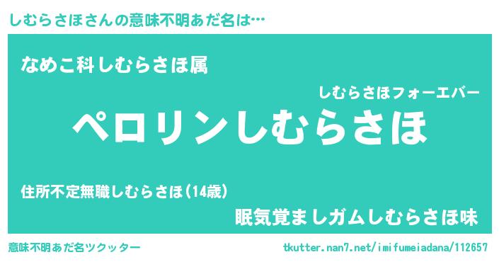 | ヘコむあだ名 | 『しむふぇ~』『なまこ酢』『しむを』 |