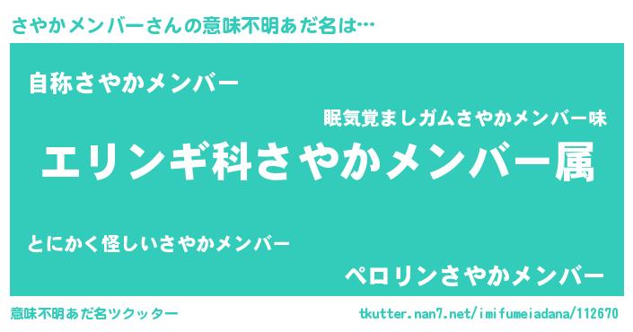 | 男性向けラノベタイトル風あだ名 | 『サヤカメンバースレイヤー』 |