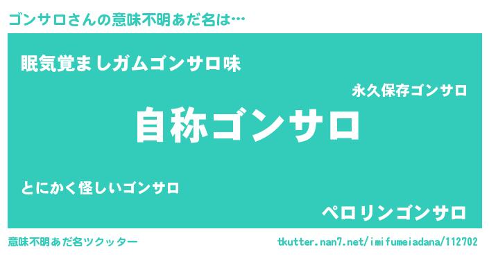 | 男性向けラノベタイトル風あだ名 | 『Re:ゴンサロから始める異世界生活』 |