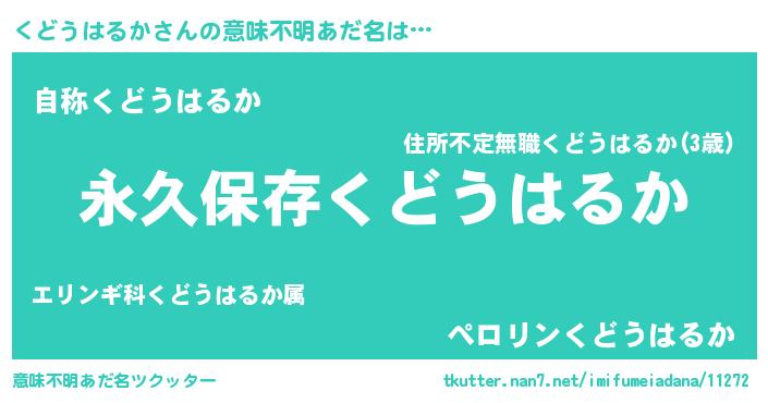| ヒーロー風カッコイイあだ名 | 『ネオクドウハルカ』『仮面クドダー』 |