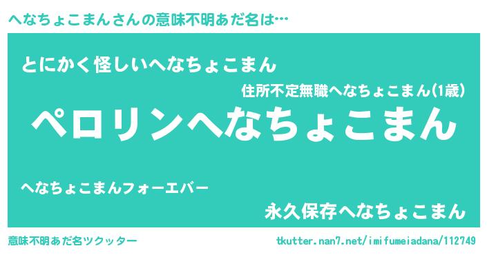 | 男性向けラノベタイトル風あだ名 | 『へなちょこまんに滅ぼされるだけの簡単なお仕事です』 |