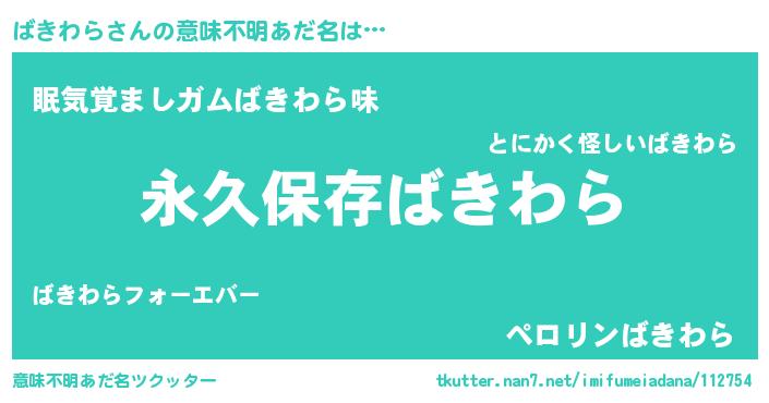 | 胡散臭い通販商品みたいなあだ名 | 『絶対に幸福をもたらす水素水…その名も「ばきわら」』 |