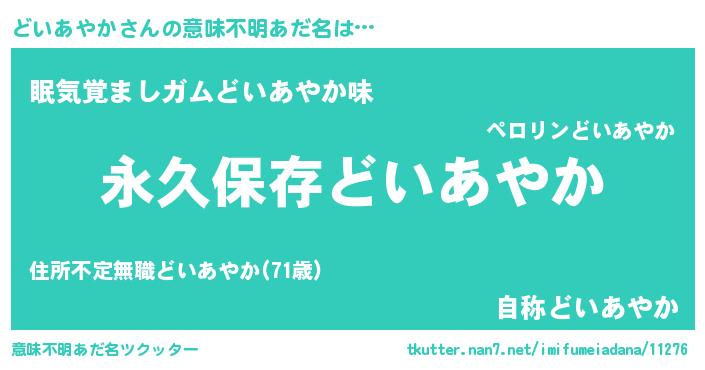 | 胡散臭い通販商品みたいなあだ名 | 『来世でも幸せになれる水素水…その名も「どいあやか」』 |