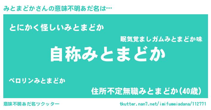 | 男性向けラノベタイトル風あだ名 | 『Re:みとまどかから始める異世界生活』 |