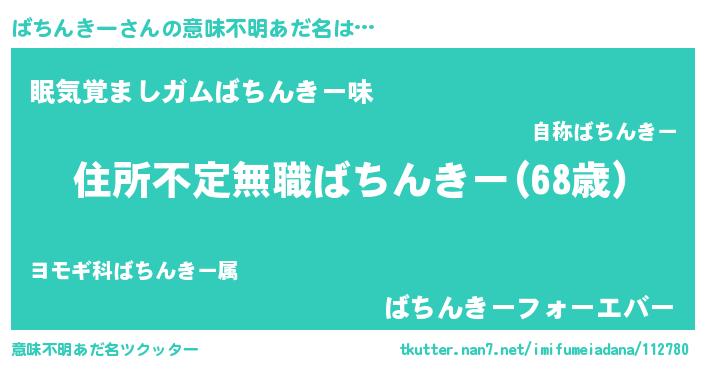 | 男性向けラノベタイトル風あだ名 | 『この素晴らしい世界にばちんきーを!』 |