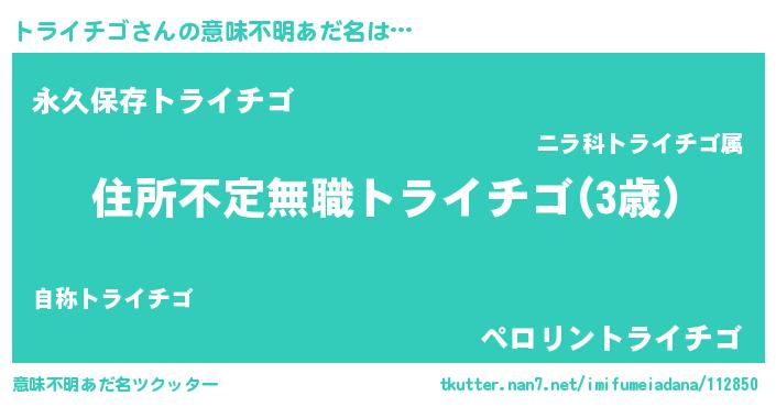 | ヘコむあだ名 | 『トライチゴ(小並感)』『トラもー』 |