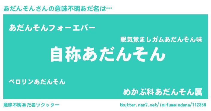 | 男性向けラノベタイトル風あだ名 | 『あだんそんに滅ぼされるだけの簡単なお仕事です』 |