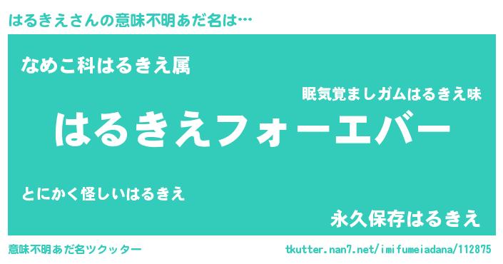 | ヒーロー風カッコイイあだ名 | 『ウルトラはるきえマン』『ネオハルキエ』 |