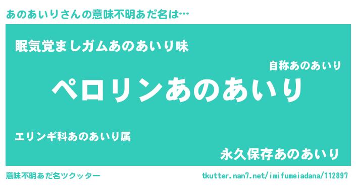 | 恥ずかしいあだ名 | 『プリティーあのあいり』『あのちん』 |