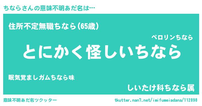 | 女子向けラノベタイトル風あだ名 | 『ちならの卵を拾いまして』 |