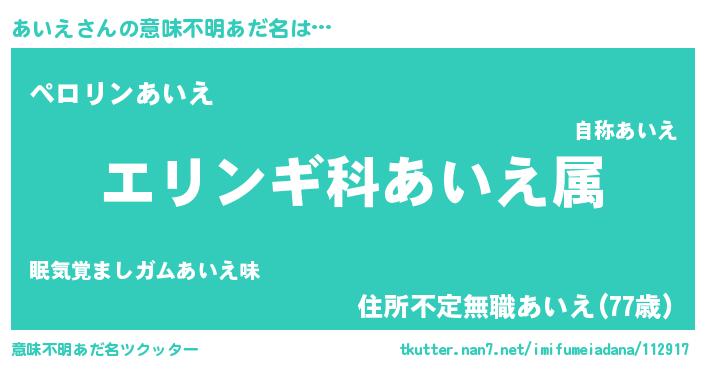 | 肩書あだ名 | 『あいえ中将』『あいえCEO』 |