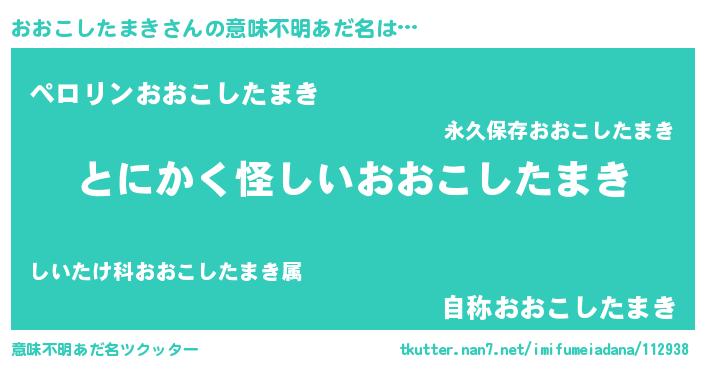 | 男性向けラノベタイトル風あだ名 | 『うちのおおこしたまきが世界を掌握している!』 |