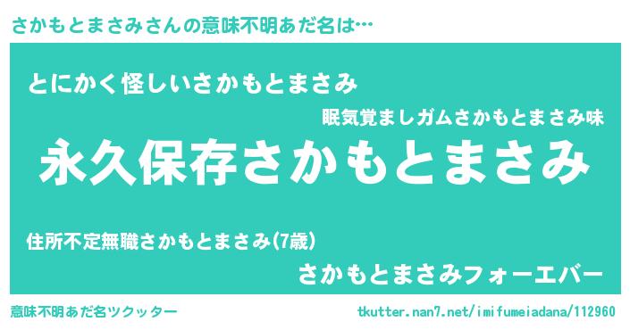 | 胡散臭い通販商品みたいなあだ名 | 『絶対に幸福をもたらす健康食品…その名も「さかもとまさみ」』 |