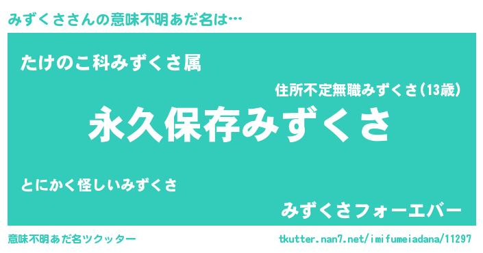 | 胡散臭い通販商品みたいなあだ名 | 『来世でも幸せになれる水素水…その名も「みずくさ」』 |