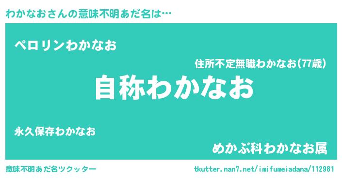 | ヒーロー風カッコイイあだ名 | 『サイバー戦士ワカナオ』『仮面ワカダー』 |