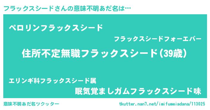 | 男性向けラノベタイトル風あだ名 | 『この素晴らしい世界にフラックスシードを!』 |